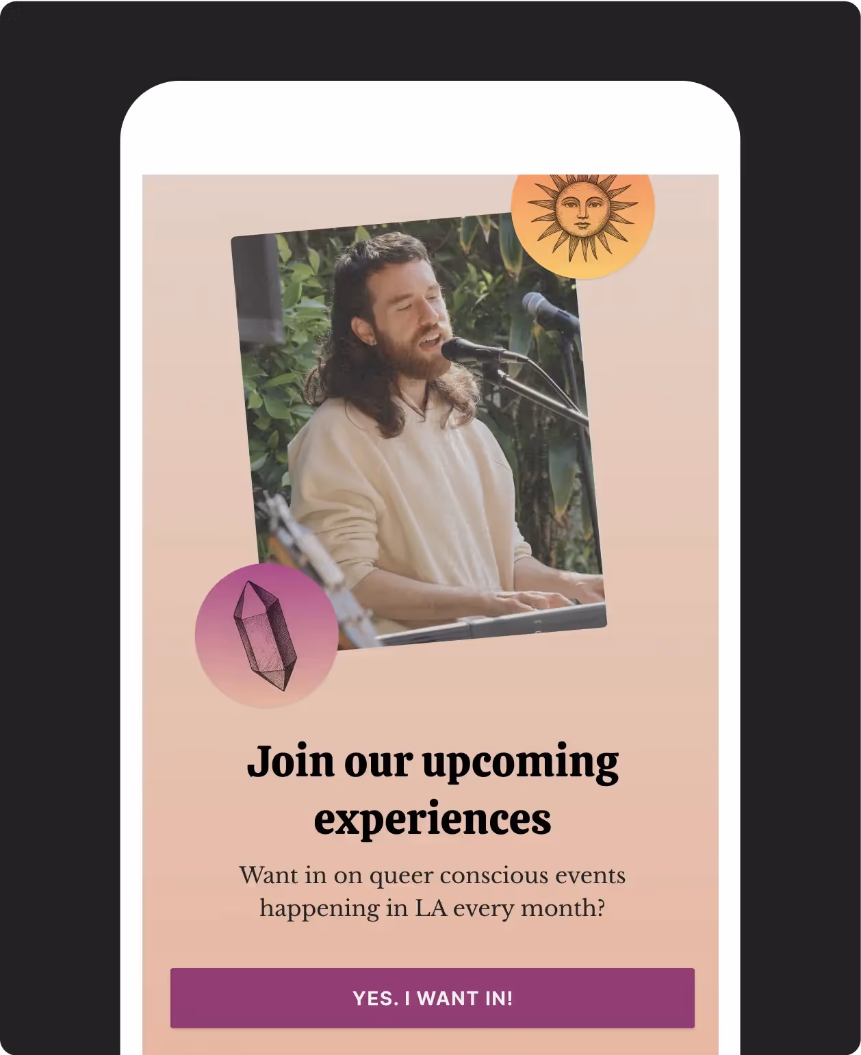 We started with wireframes to simplify how guests, guides, and hosts move through the site, clarifying how each engages with the “haus.” From there, we translated those pathways into a Framer build that balances personality with practicality: cheeky headlines, expressive layouts, and an intuitive event system that makes conscious queer connection easy to find and join.